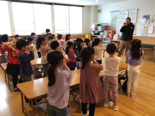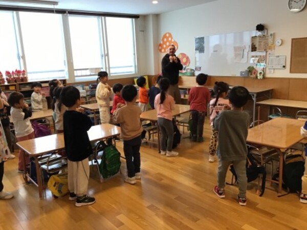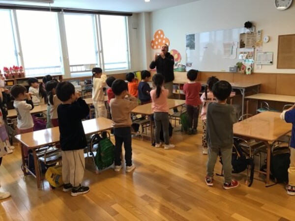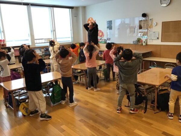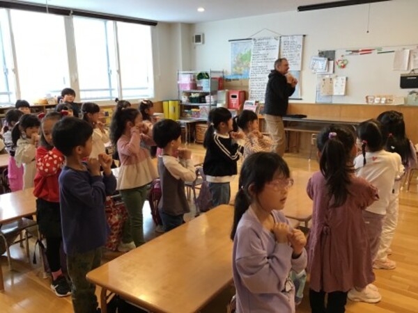 | 12月5日(金)太陽組(4歳児)の英語教室がありました。 今日の英語教室はクリスマスバージョン🎄 ハローソングもクリスマスバージョンの「トナカイ」に「雪だるま⛄」、「サンタ🎅」が登場し、それぞれの英語とダンスを教えてもらいみんなで楽しく歌いました。 次にクリスマスにまつわるカードを見て「クリスマス ツリー」や「サンタ」などの英語も教えてもらいました。ちなみに、ロング先生の国ではサンタクロースのことを「father claus」と言うそうです。 最後は、クリスマスにまつわるカードをかるた取りのように、ロング先生の言ったカードを取るゲームをしました。優勝したお友だちは、大喜びでした。 今年の英語教室もきょうが最終日、「ハッピー クリスマス」・「よいお年を・・・」のごあいさつで今年の英語教室が終わりました。 来年もよろしくお願いします。 |