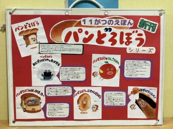 | 今月の絵本紹介は新刊「パンどろぼうシリーズ」です。 “パンどろぼう“って、なにもの⁉「おいしいパンを さがしもとめる おおどろぼう」 にせパンどろぼうがあらわれる「パンどろぼうvsにせパンどろぼう」 パンどろぼう、危機一髪⁉ 読むとお腹がすいてくる「パンどろぼうとなぞのフライパン」 え・・・パンは?まさかの展開の「パンどろぼう おにぎりぼうやのたびだち」 「パンどろぼうとほっかほっカー」はパンどろぼうの「愛車」登録? などなど、読み聞かせが楽しいユーモア絵本シリーズです。 |