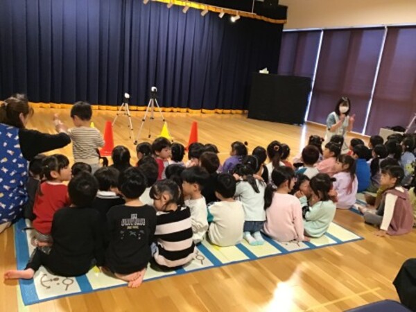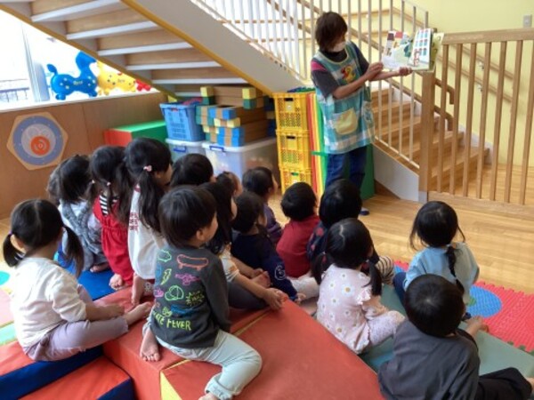 | 10月20日(月)10月のお誕生会がありました。 雪組(0歳児)・星組(1歳児)の10月生まれのお誕生さんはいませんでしたが、雪組(0歳児)に9月のお誕生会を欠席していたお友だちがいたのでお祝いしました。 みんなで歌をうたったり、ケーキ🎂を作ったりと楽しんだ後は「ころころたまご🥚」のエプロンシアターを見ました。「ころころたまご🥚」の手あそびも可愛らしく、かいじゅーさんのたまごの登場に盛り上がっていました。 一か月遅れのお誕生会でしたが、お誕生日おめでとうございました🎉 |