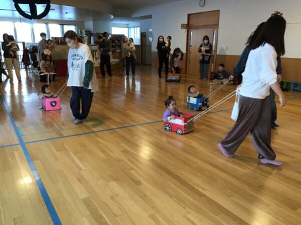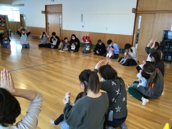 | 2月10日(火)雪組(0歳児)のわらべうた公開日がありました。 2階ホールでわらべうたやふれあい遊びを親子で楽しみました。 お名前を呼ばれると可愛らしいおててを上げてお返事してくれるお友だちも増え、笑顔があふれていました。 最後にみんなが大好きなパウパトに乗っておうちの方に引っ張ってもらいご機嫌な雪組(0歳児)のお友だちでした。 たくさんのご参加ありがとうございました。 |