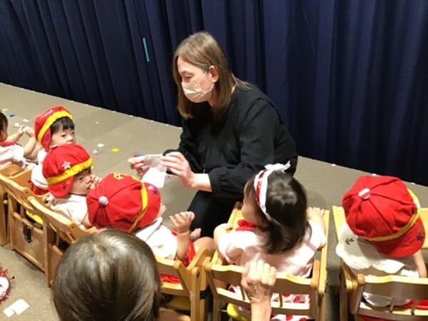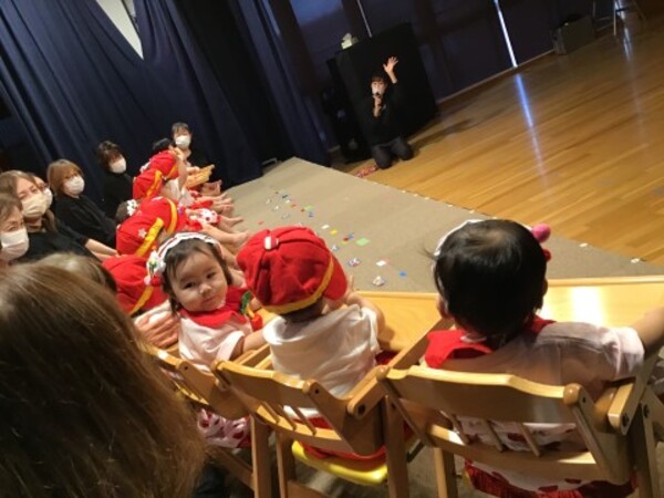 | 11月5日(水)雪組(0歳児)・星組(1歳児)の発表会総練習がありました。 いつもと違う雰囲気の中でしたが、お返事をしたり踊ったりと可愛らしい姿を見せてくれました。 11月8日(土)はどんな姿を見せてくれるか、楽しみですねぇ〜😍 |