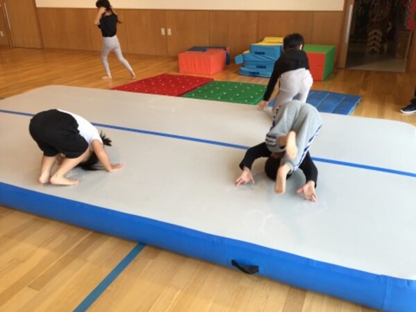 | 11月13日(木)宙組(5歳児)の太地先生の体操教室がありました。 今日は跳び箱。宙組(5歳児)も「おばけの手」で跳ぶ開脚跳びからスタートです❗ 「肩出し」に気をつけて跳んでみましたが、まだ跳べないお友だちも・・・ そこで、助走をつけておばけの手を「バン‼️」と強く跳び箱についてみると、あ〜らびっくり!!!たっくさんのお友だちがとび越えて行くではありませんか🤗 最後に横跳びに挑戦して本日の太地先生の体操教室は終了となりました。 |