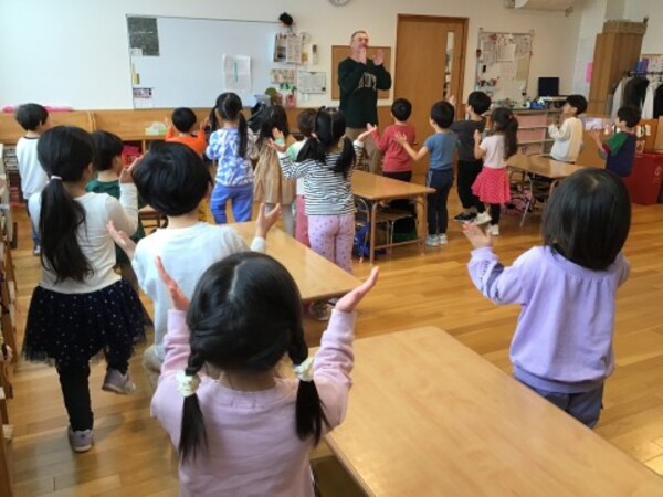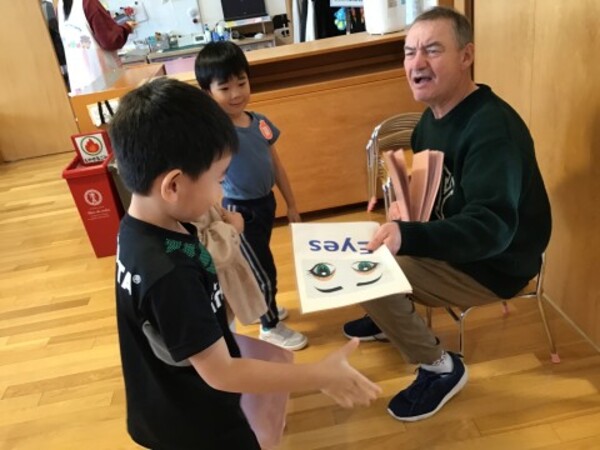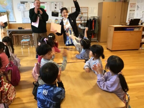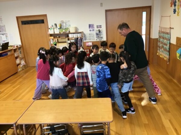| 11月14日(金)太陽組(4歳児)の英語教室がありました。 今日も元気にハローソングと発表会でも歌ったハッピーソングを歌って始まりました。 その後は、ロング先生とひとりずつ英語でエモーションカードを見ながらあいさつ😊 最後は、3チームにわかれてロング先生の言ったからだの部分を当てるゲームで盛り上がりました。 |