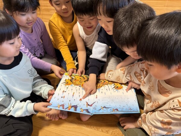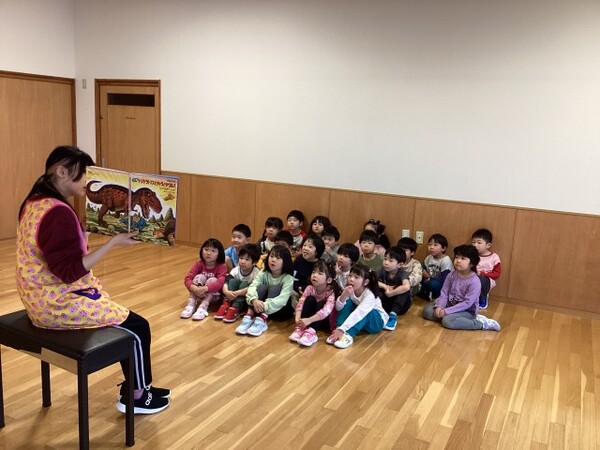 | 令和8年度初めての絵本ライブラリー紹介です。 4月は宙組(5歳児)のおすすめ、恐竜トリケラトプスシリーズの絵本です。 トリケラトプスが中心の冒険物語。親子愛や、種を越えて他を助ける姿も描かれていて、恐竜好きな子も、そうでない子も楽しめる絵本です。 読み聞かせタイムは、恐竜の時代にタイムスリップしたように真剣な宙組(5歳児)のお友だちでした。 |
