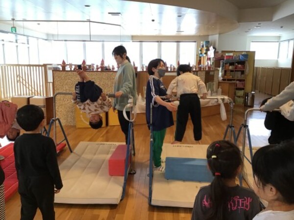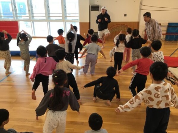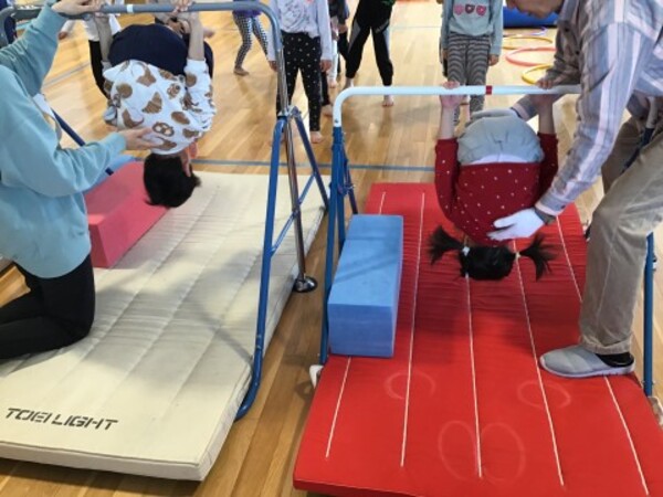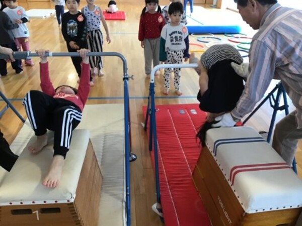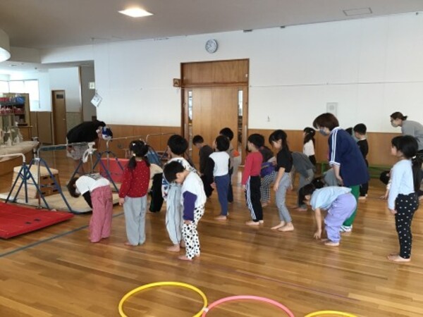 | 12月18日(木)太陽組(4歳児)の太地先生の体操教室がありました。 今年最後の体操教室。鉄棒も今日が最後となります。最後には「良いお年をお迎えください」のあいさつをするお約束をして今日の体操教室がスタートしました。 準備体操のあとバランスゲームに挑戦しました。40秒間足をつかずに耐えます。今回は13人も最後まで頑張りました✌️ そして鉄棒です。太陽組(4歳児)は足抜き回りからです。戻れるお友だちは戻ります。フープジャンプ→エアーマットジャンプ→前転でワンクール。足抜き回りがとっても上手になった太陽組(4歳児)のお友だち❗続いて逆上がりの練習です。跳び箱・積み木に上向きに寝て足を上げて逆さまになる感覚を確認しました。今年の体操教室はここまででした。 太地先生、今年も一年ありがとうございました。また、来年もよろしくお願いいたします。 |