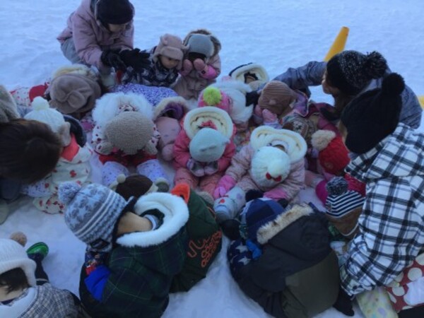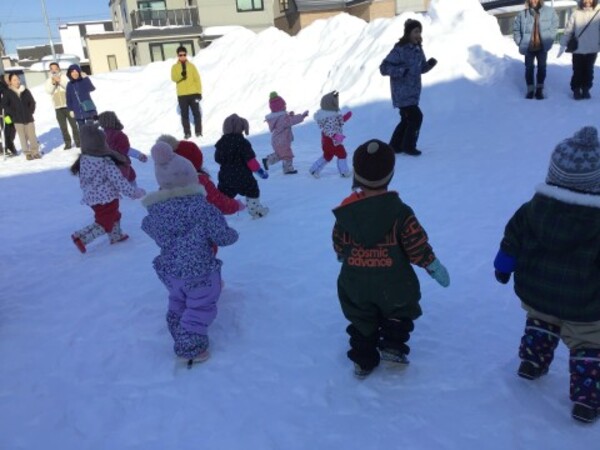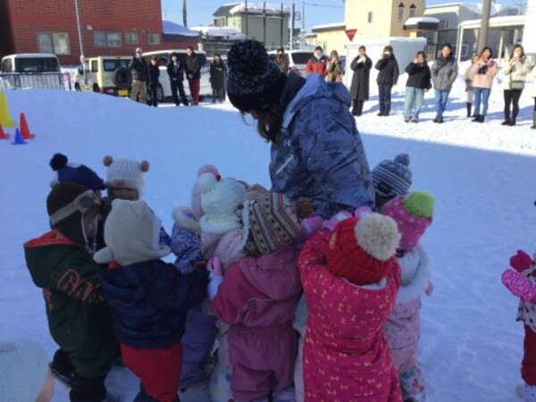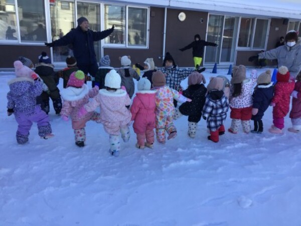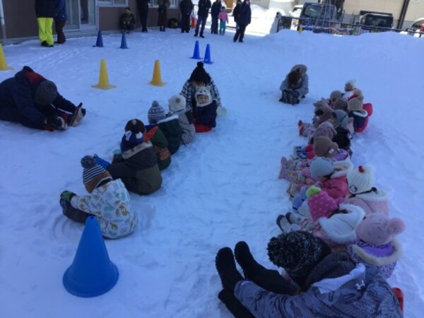 雪中運動会 月組(2歳児) 1月29日(木)月組(2歳児)の初めて雪中運動会がありました。月組のプログラムは1.準備体操 2.宝探しゲーム 3.先生をつかまえろゲーム でした。太地先生のお話をしっかり聞いて、寒さに負けず最後まで楽しみました。寒い中、たくさんの声援ありがとうございました。 準備体操 柔軟体操 宝物を隠している間は 目を閉じて みーつけた 先生を捕まえろ〜 つかまえたー 2026/01/29