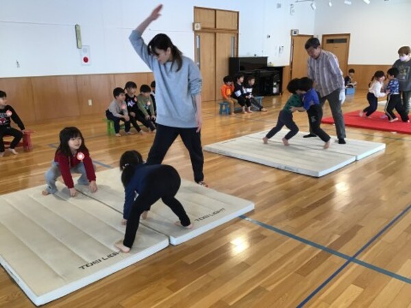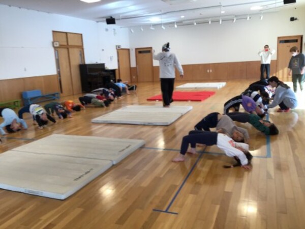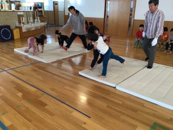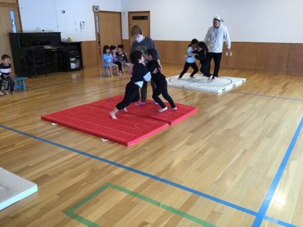 太地先生の体操教室 太陽組(4歳児) 2月5日(木)太陽組(4歳児)の太地先生の体操教室がありました。今日は「すもう大会」。4チームにわかれて勝ち抜き戦。闘志を燃やす太陽組(4歳児)のお友だち。白熱のゲームが繰り広げられていました。「すもう」は痛くても頑張れる強い気持ちが大切、その気持ちがあったら宙組になっても大丈夫と大地先生のメッセージでした。 準備体操 バランス ストップ ゲーム1分間で12人以上残れるか‥残念⤵ 初めてのブリッジに挑戦☝️ はっけよーい のこった! のこった!のこった!! 2026/02/05