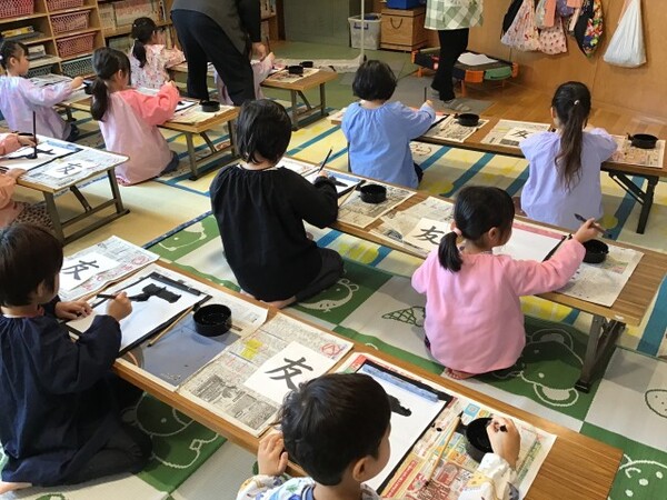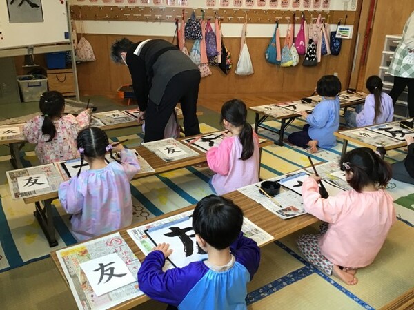 書道教室と園長先生のわらべうたあそび(Aグループ) 宙組(5歳児)