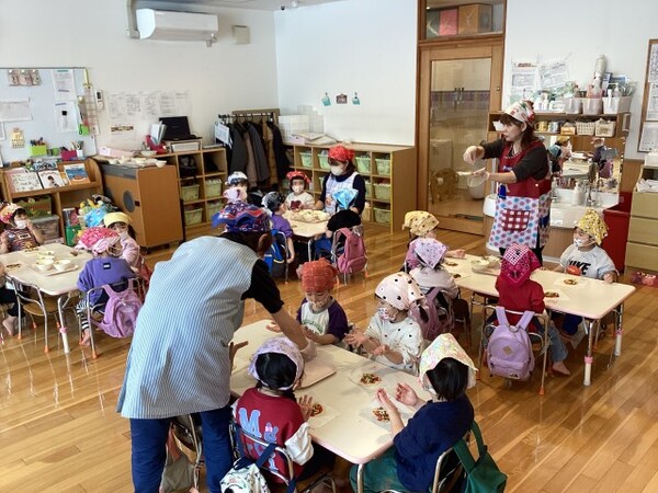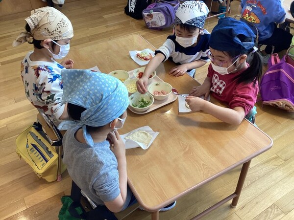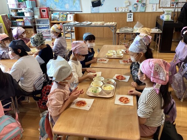 | 3月17日(火)月組・虹組・太陽組・宙組(2・3・4・5・歳児)のお友だちがお別れ会クッキングでピザづくりをしました。 生地を伸ばしてピザソースを塗り、玉ねぎ・ピーマン・コーン仕上げにチーズをトッピング! 給食で美味しくいただきました。今日のデザートはミニパフェでした🤤 宙組のお兄さん、お姉さんたくさんあそんでくれて ありがとうございました。 |