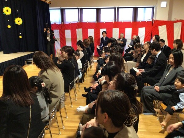 第9回 入園式 4月4日(土)、4月1日から入園したお友だちと保護者の皆様、前年度途中入園したお友だちと保護者の皆様にご参加いただき、第9回入園式を行いました。今は、時々寂しくなって涙が出ることもありますが、気づけば秋月こども園が大好きになっていますよ☺️本日はたくさんのご参加ありがとうございました。そして、入園おめでとうございました🎊 親子で入場です👏 皆さん 着席しました 理事長挨拶 お祝いメッセージ上映 お楽しみタイムの人形劇 2026/04/04